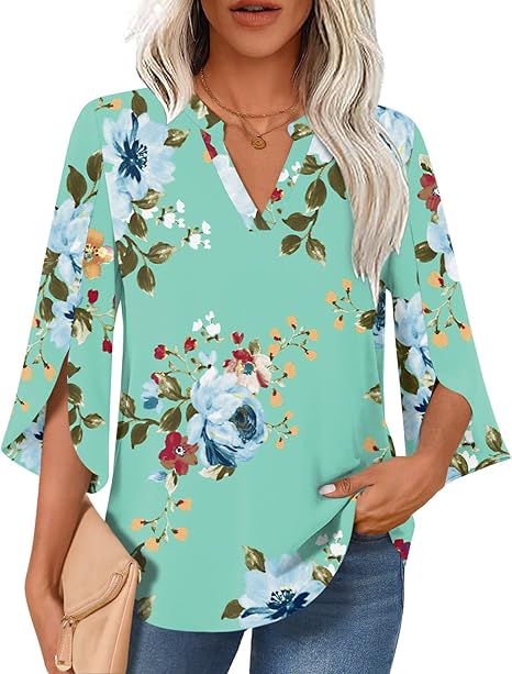 Dressy Casual 3/4 Sleeve Tops, Business Work,